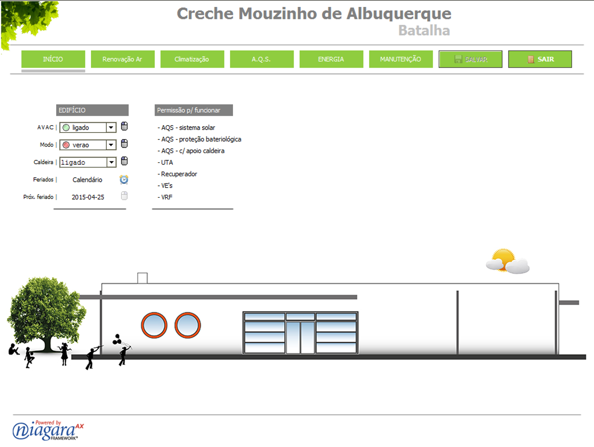 Desenvolvimento do controlo da UTA com bateria de expanção directa em LonWorks; Integração de sistema de ar condicionado em LonWorks e rooftop em ModBus; Controlo da produção de AQS com caldeira e paineis solares.